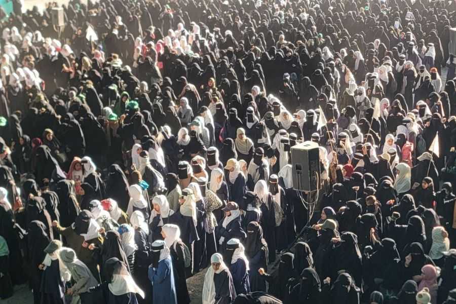 ومن جماهيريات الوفاء والثبات على العهد، تهتف نساء اليمن بالتلبية تارة للشهيد وثانية للقدس، فالمسيرة واحدة... والغاية فلسطين... ودرب التحرير يُعبّد بالجماجم والدماء...